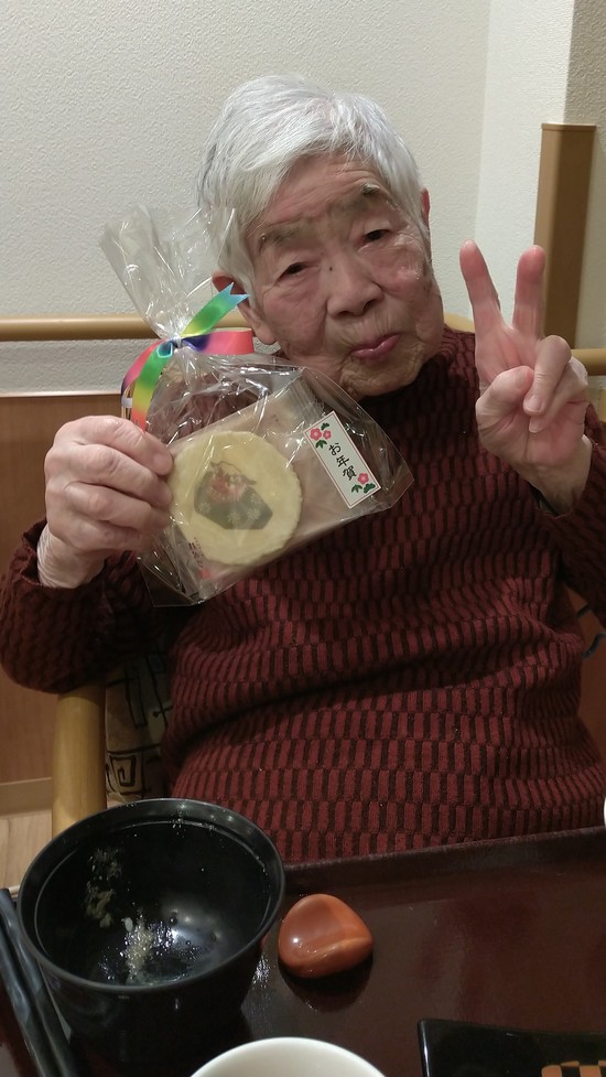 その後にお年賀のお煎餅かどらやきをお渡ししました