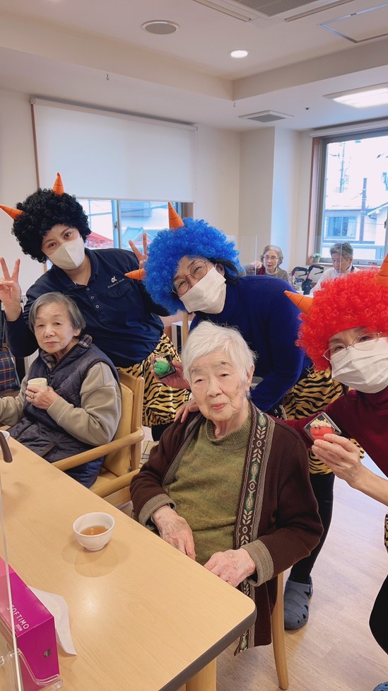 入居者様は鬼さん達を怖がることなくお饅頭を受け取り笑顔になりましたとさ