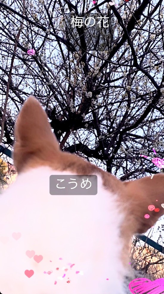 2023年03月14日(火) 3月の花といえば…(^^) 3月の代表的なお花の1つに梅の花がありますね こちらの梅の花はスタッフと・・・ スタッフの愛犬のこうめチャンのお散歩の時に撮った写真です こうめチャンの後ろ姿が梅の花に見とれるように見えますね メッチャ可愛いです こうめチャン、またの出演をお待ちしてま~す