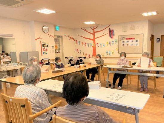 お昼ご飯の前に皆さんで発声練習に取り組みました。