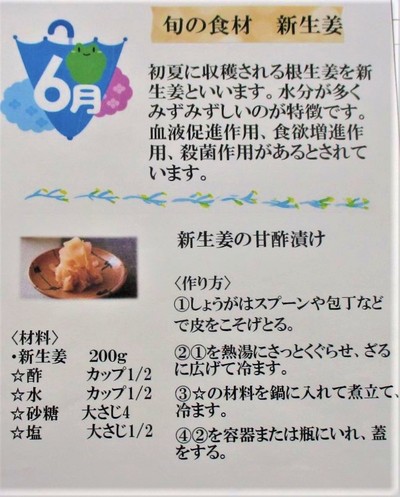 6月の食材、新生姜が効果的です