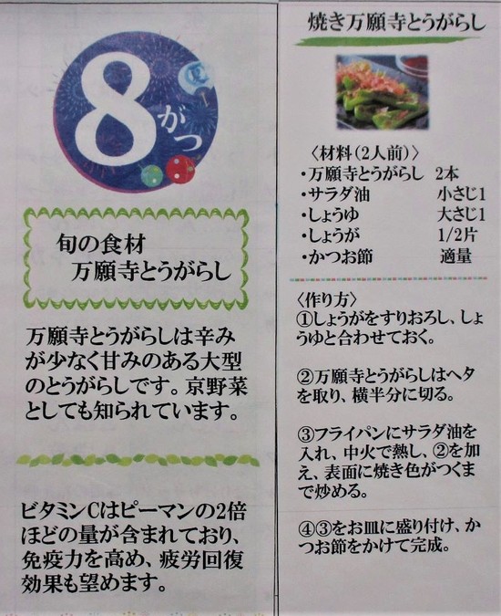 厨房さんお勧めの焼き万願寺とうがらしを作ってみては