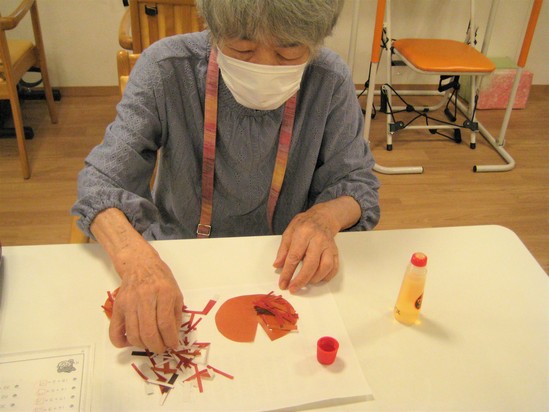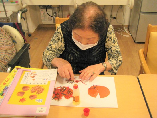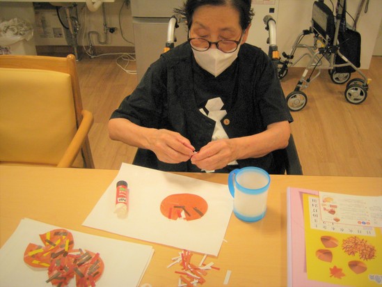 利用者様と栗のイガを制作しました