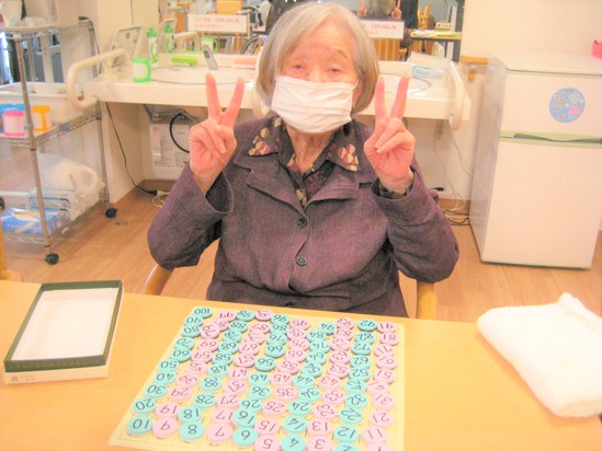 2023年10月11日(水) 出来たで~! 体操、訓練を毎日熱心に取り組まれています。 「口の体操は大丈夫やねんけどな~」と仰られ、数字合わせを 完成され「為せば成るな~」とピースサイン 明日も一緒に頑張りましょう!