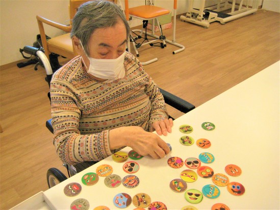 2023年10月17日(火) 顔パズル デイサービスでは、様々な脳トレグッズを用意しています。同じ顔のパズルが2つあり、見つけていく脳トレになります。「難しいわ~、、、」と苦戦されていましたが、「あら、あったわ❕」と笑顔になっていました