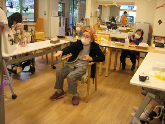 ハロウィンの日にみんなで好きな仮装をして体操やゲームをしました