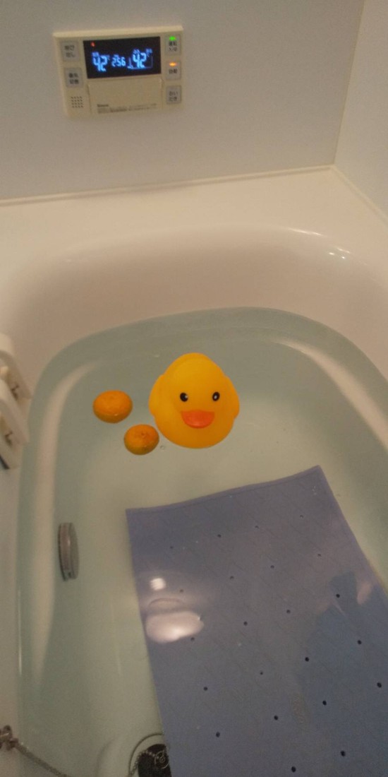 2023年12月23日(土) 冬至②~入浴編~ 冬至①~食事編~の続きです スタッフより柚子の差し入れがありました(≧▽≦) (Fさん、ありがとうございます!) 早速湯船に入れてみました あひるちゃんかわいい♡ 柚子の入ったお風呂は利用者様にとても喜んでいただけました。 「いいにおいがして気持ちいい。」との声も。 湯船に入りながら柚子を持って、ずっと匂いを嗅いでおられる利用者様もいらっしゃいました。