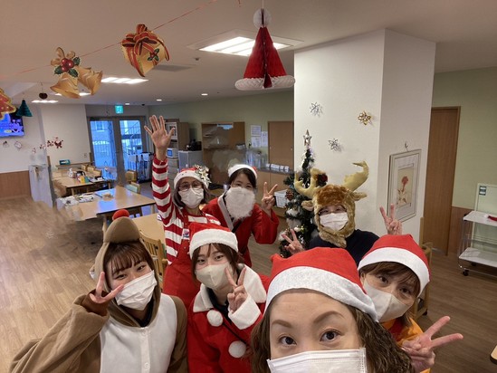最後はクリスマスコスチュームのスタッフではい、ピース
