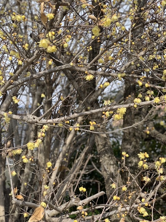 2024年02月07日(水) 蝋梅を見つけました(^^) スタッフTさんがお散歩してる時に 蝋梅(ろうばい)という黄色い梅の花を見つけました 写真ではお伝え出来ないですが甘くて良い香りのするお花だそうです Tさんいつも珍しい植物を教えていただきありがとうございます