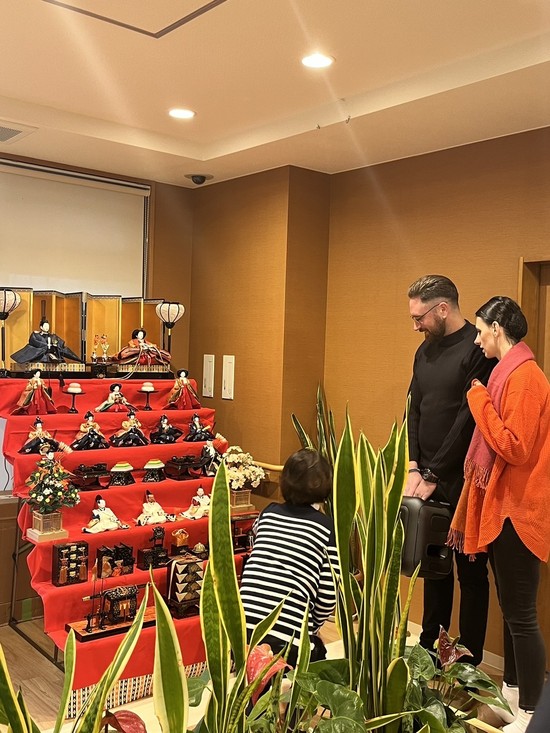 お二人に日本のお雛様も見て頂きたく、ひな壇も設置しました!!