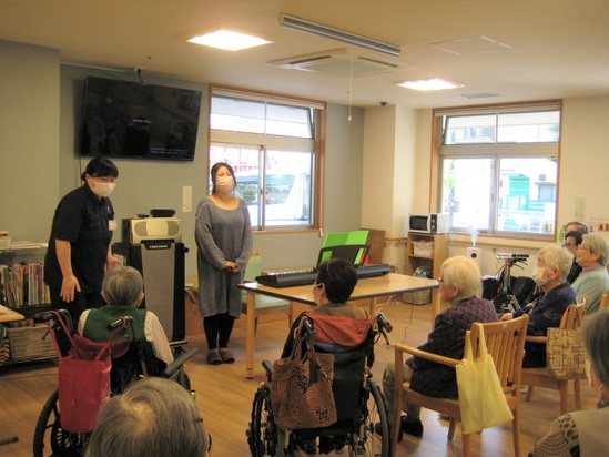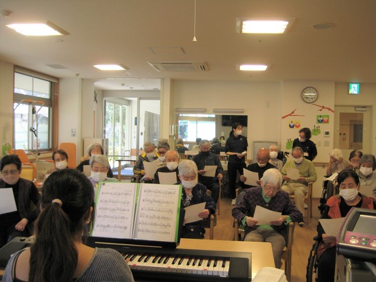 2024年03月30日(土) ☆歌の会☆ 少しずつ暖かくなってきましたね 1階のデイフロアで、歌の会を開催しました! 訪問介護の管理者Tさんの娘さんが、ピアノを弾きに来てくださいました 皆さん一緒に懐かしい歌をたくさん歌いました