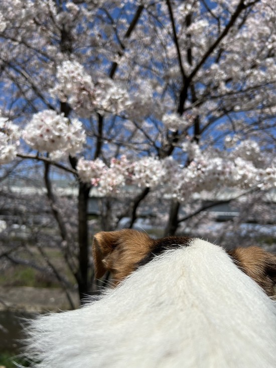 今年も愛らしい背中を見せてくれながら満開の桜を眺めています