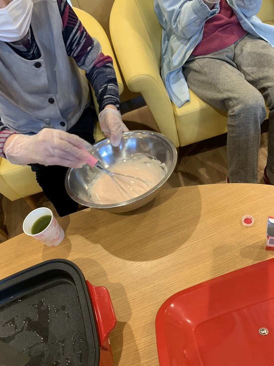 4月のイベントで桜餅を入居者様と一緒に作ってみました