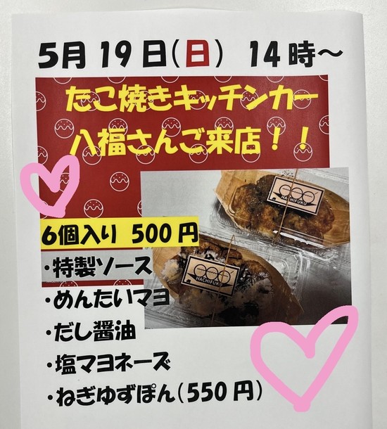 たこ焼きキッチンカー(八福さま)が来ます
