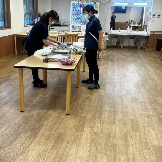 昼食も終わり、入居者様が全員居室に戻られてから、早速準備開始です。