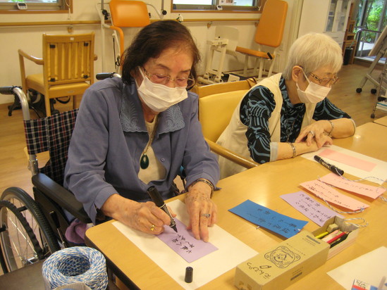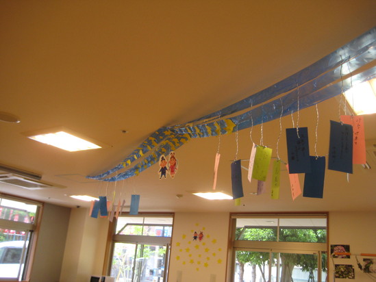 2024年07月08日(月) ☆七夕☆天の川⁈ 7月7日は七夕でした デイサービスでは短冊に願いを込めて皆さんに思い思いに書いていただきました 今年はデイサービスの天井に天の川出現 織姫と彦星が出会えました。 皆様の願い事も叶いますように
