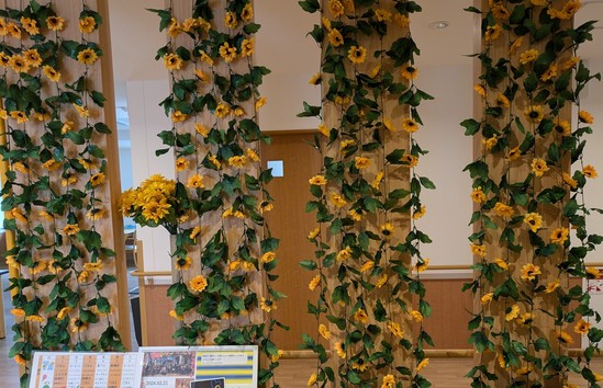 アルファリビングではきれいなヒマワリが満開にいっぱい飾られています