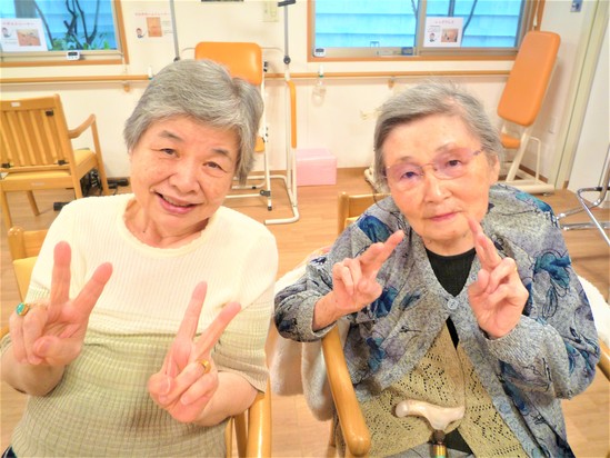 2024年08月19日(月) 仲良し デイサービス仲良しお2人組 お話好きなお二人いつも色々な話題で花がさいておられます 今日はそれぞれご自身の出身地の話で盛り上がっておられました いつも元気なお二人です