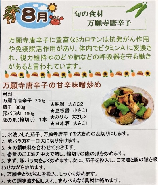 今月の食材は、、万願寺唐辛子です