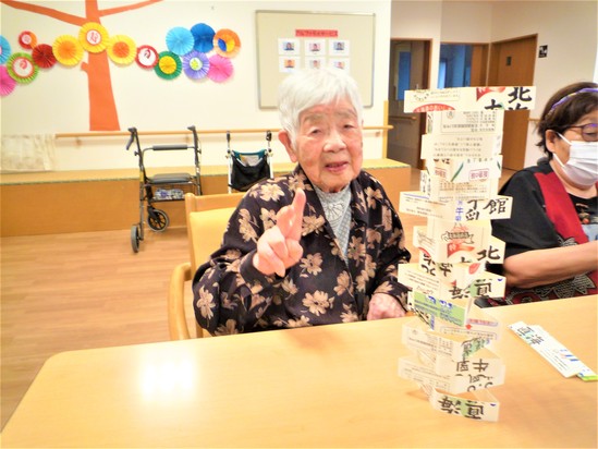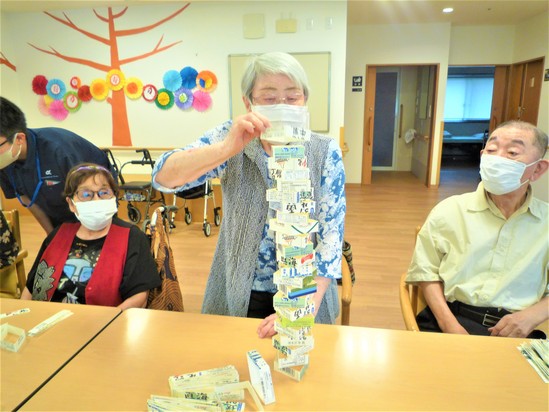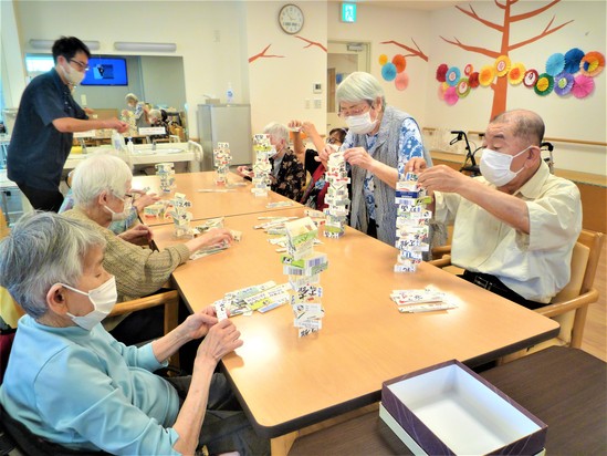 今日のレクリエーションは牛乳パックでタワーを作りました