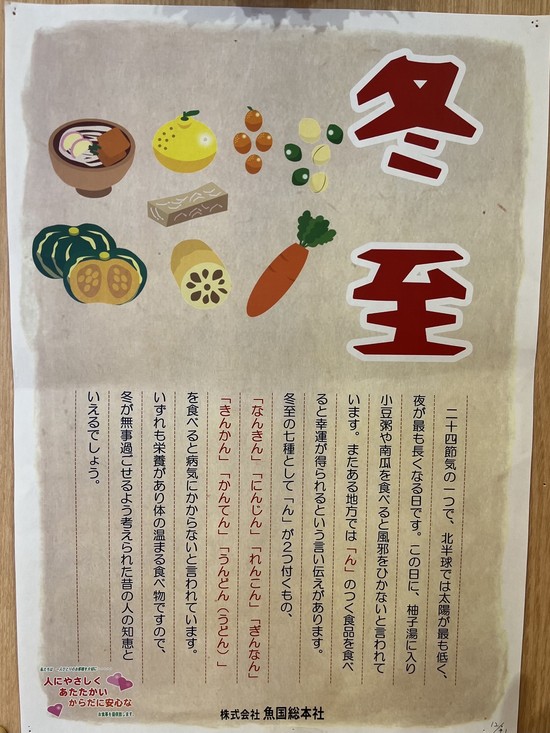 冬至は一年で最も昼の時間が短い日だそうです。