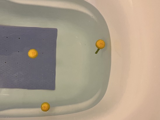 スタッフが持って来て下さった柚子を湯船に入れると