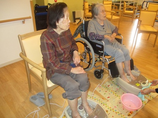 2016年01月12日(火) デイサービスの足湯 アルファデイサービス川西では、参加者のみなさんに足湯をしています。 どうしても抹消の循環が悪くなるので、みなさん足がむくんでしまいます。 足のむくみを少しでもとれるメニューを今後もとりそろえていきます。