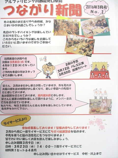 つながり新聞の3月号ができたので、みなさんにお配りしました。