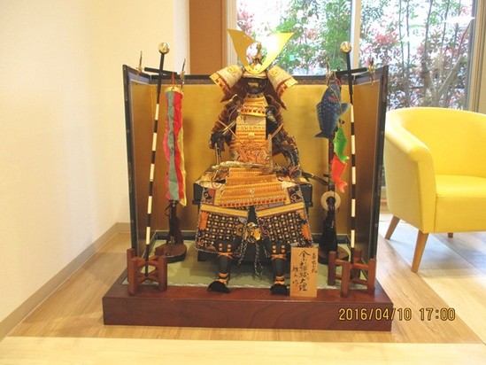 今月は子供の節句に向けて5月人形をかざりました。