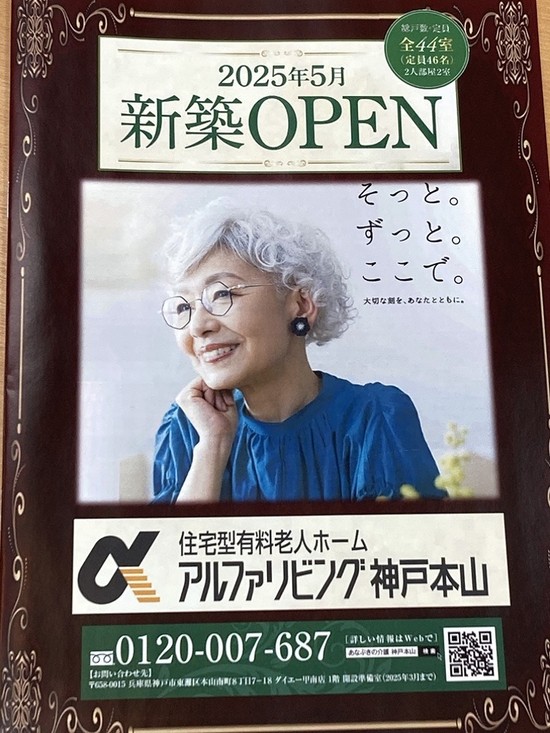 2025年02月19日(水) アルファリビング神戸本山開設準備室オープン③ アルファリビング神戸本山開設準備室 アルファリビング神戸本山は神戸市東灘区本山中町3丁目6-16に建設中で、 2025年5月新築オープンする住宅型有料老人ホームです。 介護に関する パンフレットもご用意しております。 お気軽にお立ちより下さいませ。