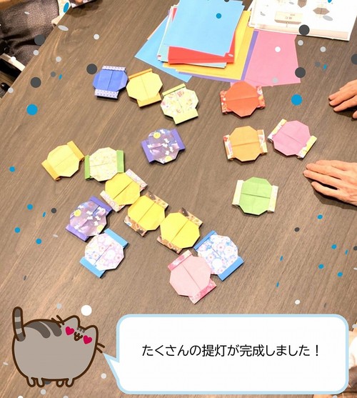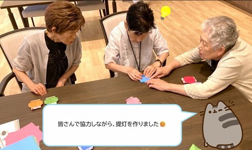 夏祭りの飾り付けの第一弾として「提灯」を皆様で協力して制作していただきました。