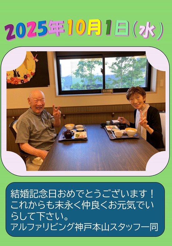 「今日は結婚記念日なのよ!63周年なの♪」とお話をお伺いしました。