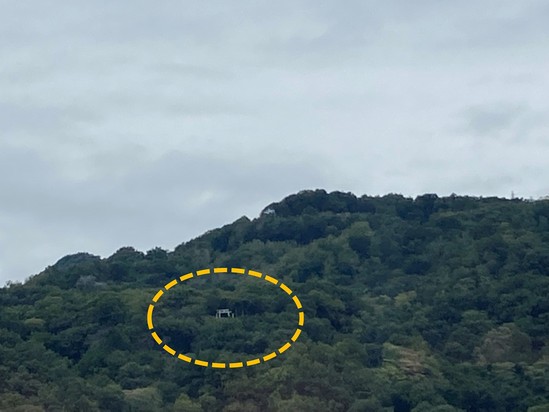 山の中に白い鳥居が見えます!