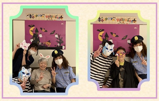 笑顔で記念撮影していただき、スタッフ一同ハロウィンイベントを実施して