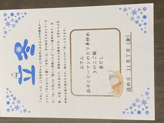 先日立冬ということで特別メニューが提供されました!