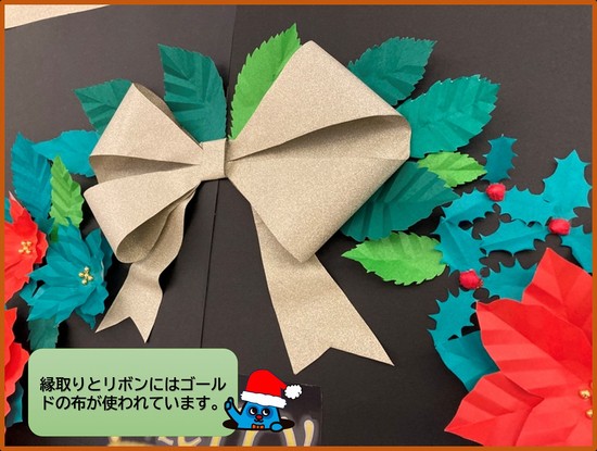 両端に飾られている雪の結晶はシルバーの紙を切り抜き作られています。