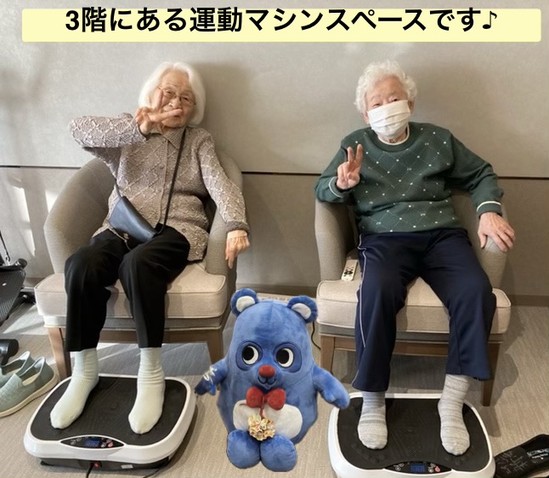 会話楽しまれながら振動マシン中のご入居様に撮影をお願いしたところ、素敵な笑顔とピースサインをいただきました。