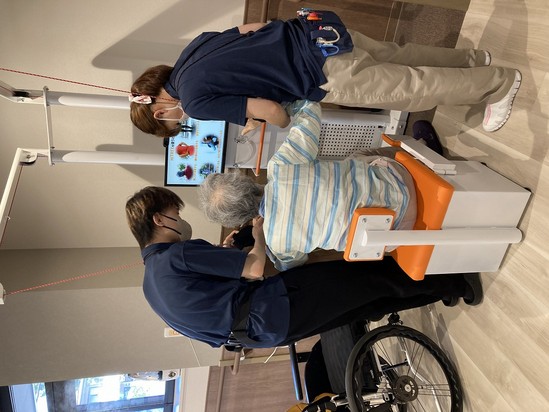 車椅子の方なので、車椅子から椅子への移動、座っていただくための