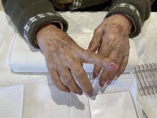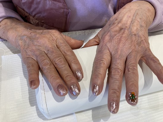 利用者様の指先は、色鮮やかな仕上がりでした