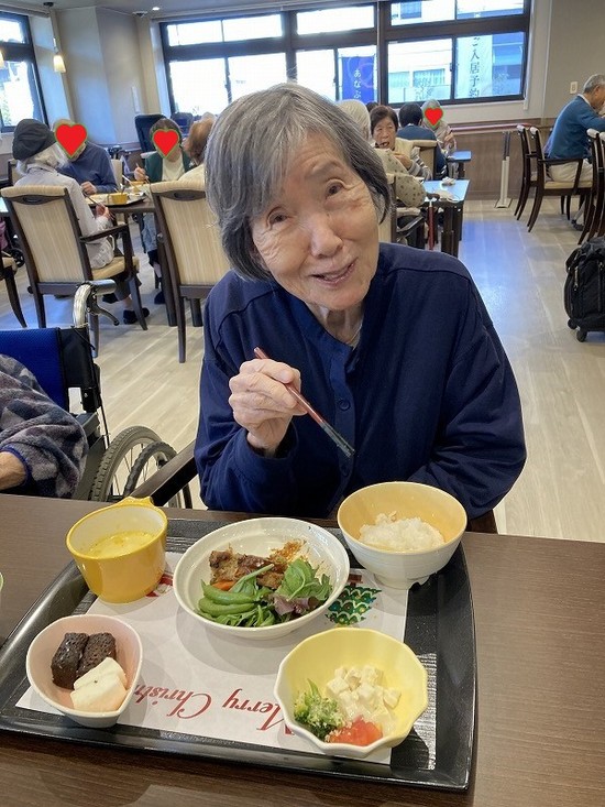 クリスマスのイベントメニューという事で、入居者様と家族と同じメニュー