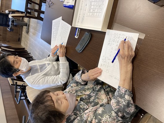 レクリエーション終了後利用者様が「教えてもらってありがとう、昔のことも思い出した」と言われました。
