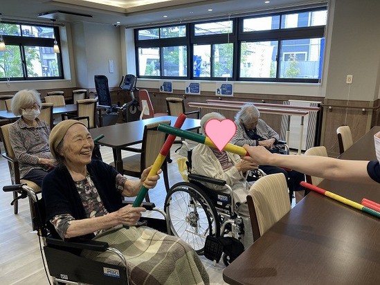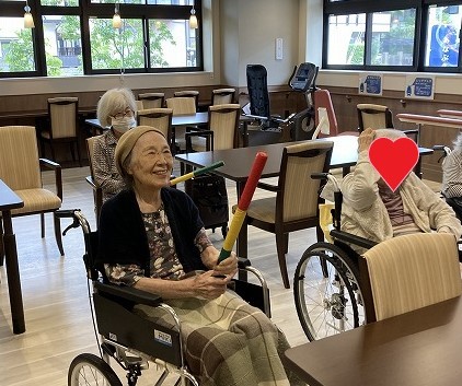 職員との「ハイタッチ」もしながらご入居様は楽しまれています