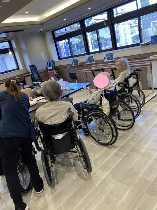 入居者様が集まってきたところで、揚げパンレクリエーション開催です