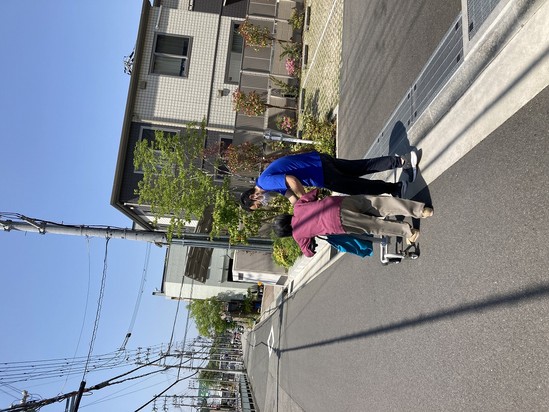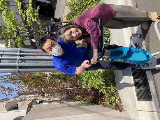 2025年05月18日(日) リハビリ頑張っています 今日、リハビリの先生がいらっしゃいました。 天気が暖かくて空気も澄んでいます。だから屋外で歩行練習をする。 笑顔で「気持ちいいわ」と言われました。 これからも毎日楽しく過ごしていきます。