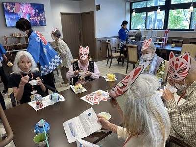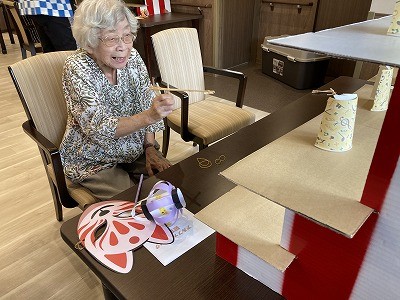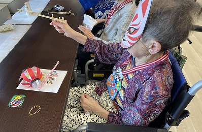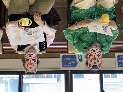 手作りお面と提灯と夏祭りMAPをお一人ずつお配りしています(´▽`)ノ