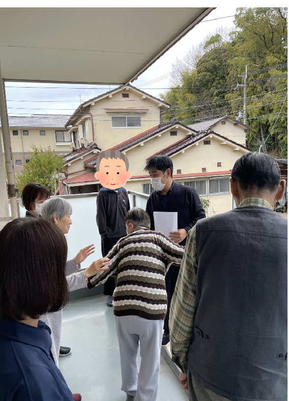 2026年03月31日(火) 消防訓練② 消防訓練の続きです。バルコニーから階段を降りる動線を確認。ご入居者様も真剣に説明を聞いて下さり「アナウンスが聞こえにくかった」「ここにはスロープあった方が良いね」など、貴重なご意見もいただきました。この度の訓練で改めて気付かせていただいたこともありスタッフ一同、今後の運営にしっかり活かしてまいります。ご協力ありがとうございました!(^^) こんな所に階段が! 階段は焦らずゆっくりと
