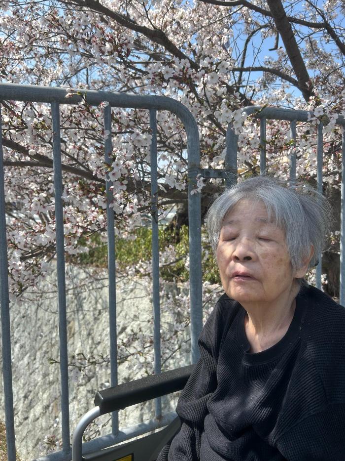 2026年04月04日(土) お花見日和 こんにちは!アルファリビング宝塚御殿山です。お花見日和のお天気🌞ご入居者様と一緒に近くの桜を見に行きました。気温もちょうど良かったのでしょう。季節の恩恵をたっぷりと感じておられたのかしばし目を閉じておられました( ˘ω˘)スヤァ物憂げな眼差しは、誰もが知っている俳優の桃〇かおりさんのようで魅力的。完全にハートを奪われました(≧▽≦)💕 ウトウト 心地良いのよねぇ