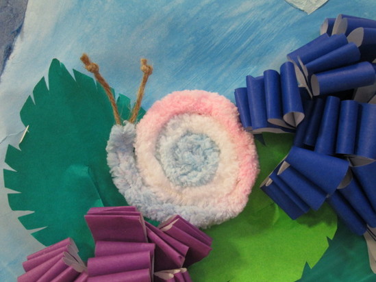 カタツムリは毛糸を巻いて表現しました。