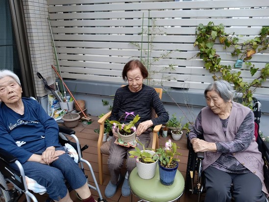 今年のテラスはお花が少なかったので、蘭の花でテラスが一気に明るくなりました( *´艸`)