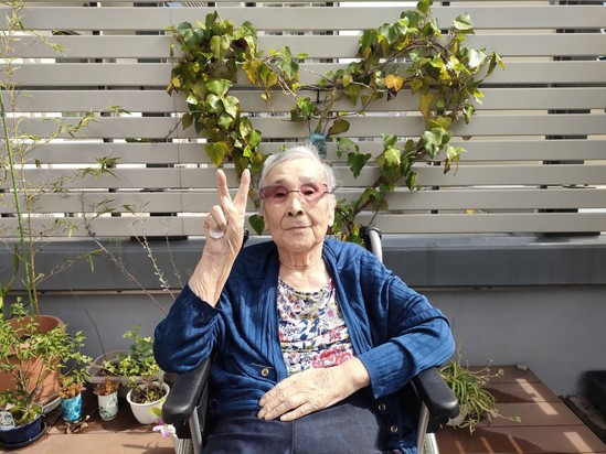 最後に紹介する写真ですが、プレミアム(介護付)での勤務が今日までとなった古瀬さんと入居者のみなさまとの記念写真です♡